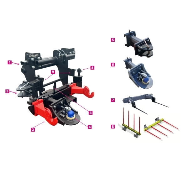 Manutention polyvalente – reprise et transport de différents outils et accessoires agricoles via l’attelage 3 points.
